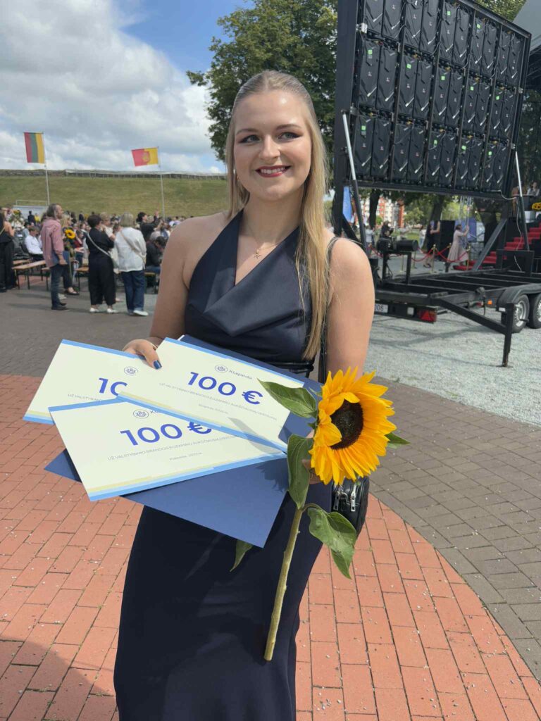 „Sėkmingai įstoti padėjo tai, jog visą mokymosi gimnazijoje laikotarpį labai gerai sutariau su mokytojais, jie padėjo ne tik kaip savo srities specialistai, bet ir kaip empatiški, šilti žmonės. Iš jų sulaukiau daug nuoširdžių patarimų apie streso valdymą, asmeninio gyvenimo ir mokslo balansą. Toks bendravimas labai palengvindavo net ir streso kupinas atsiskaitymų savaites, padėjo nuosekliai mokytis ir galų gale parodyti geriausius rezultatus“, – pasakoja Ieva.